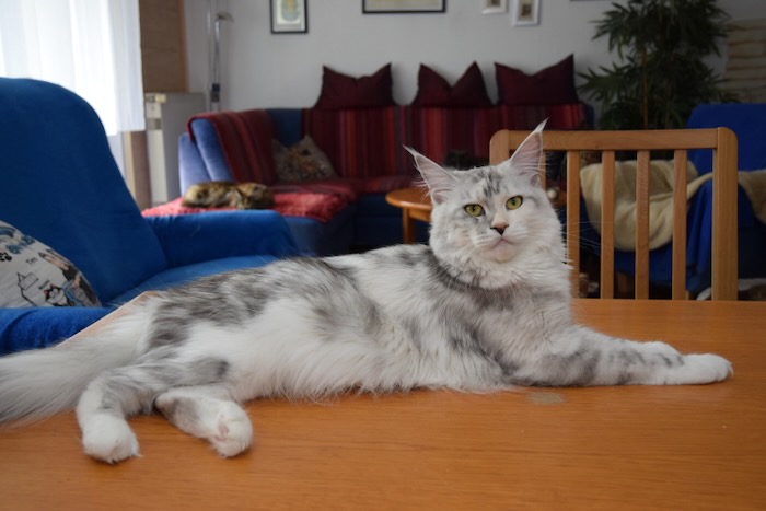 Wir zogen die Konsequenz, nahmen die Tiere aus der Zucht und ließen sie kastrieren. Damit der Maskenfaktor und der Knochendefekt, den unsere Foundations in sich tragen nicht weiter im Genpool der Maine Coon verbreitet werden.