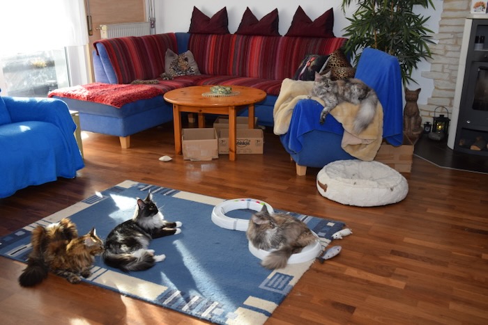 Wir, mein Mann Timo, ich (Maike) und unsere Cooniefamilie, sind eine liebevolle, registrierte kleine Hobbyzucht (mit nur ein bis zwei Würfen pro Jahr) und leben zusammen mit unseren Katzen in einem gemütlichen Häuschen mit Freigehege im schönen Schwäbisch Hall-Hessental (Großraum Heilbronn, Stuttgart, Hohenlohekreis) in Baden-Württemberg. Und ein Leben ohne unsere kleinen Tiger wäre für uns einfach nicht mehr denkbar.